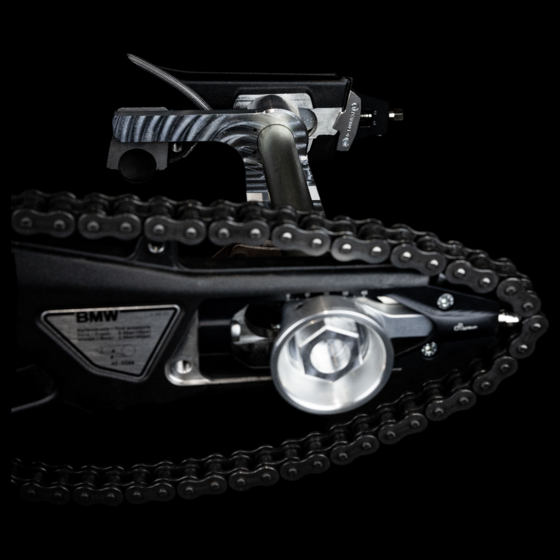 Als weitere Optionen kann eine Variante mit RMP Kettenspanner V1 / Distanzstück / sowie die direkt passende Stahlflex Bremsleitung mit Fittings bestellt werden. Dieses Basis Paket eines Schnellwechselsystems ermöglicht einen Plug&Play Einbau und einen extrem erleichterten Hinterradwechsel.
